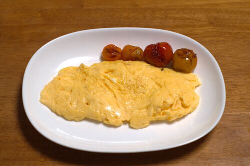 オムライスは結構頻繁に作る*1のだけど、オムレツは滅多に作らない私。 が、作った今日のオムレツ。 ううう・・・・・。 ラグビー型じゃない・・・・・・。 トントンして返すのがうまく出来ない。 卵二個に牛乳、砂糖、塩、そして今ハマってる盛田のトリュフ…